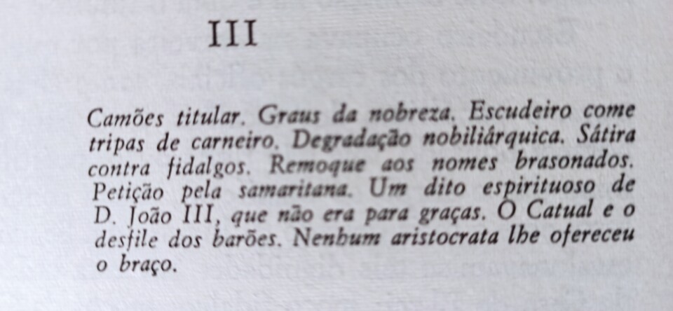 ... «Mas, saltando do tom solene para o jocoso, no mesmo Camões vamos encontrar passagens de irreverência quanto às imunidades, sobrancerias, exempção e falácia dos fidalgos. Assim nos 'Disparates da Índia'