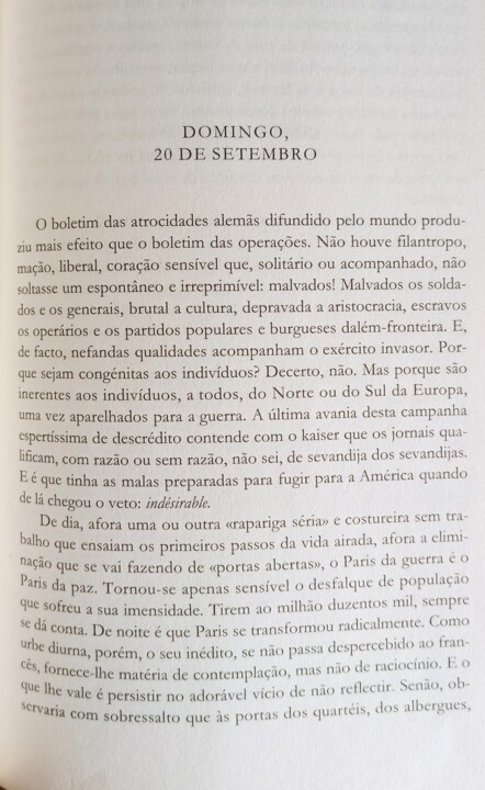 Nos bastiões dos bulevares exteriores os soldados passam-lhes por cima das paliçadas os restos do rancho que eles recolhem em escudelas, tachos e até num jornal velho. As mulheres que mostram ainda uns restos de frescura trocam pelos pobres favores do corpo a esmola de lhes matarem a fome. Na crise que desabou sobre a cidade não são as mulheres as mais provadas, todavia. Substituíram os maridos e companheiros sempre que foi praticável tal recurso, e com presteza e essa ductilidade inexcedível do francês, mormente da mulher, se adaptaram aos serviços mais variados, desempenhando-os com perfeição.